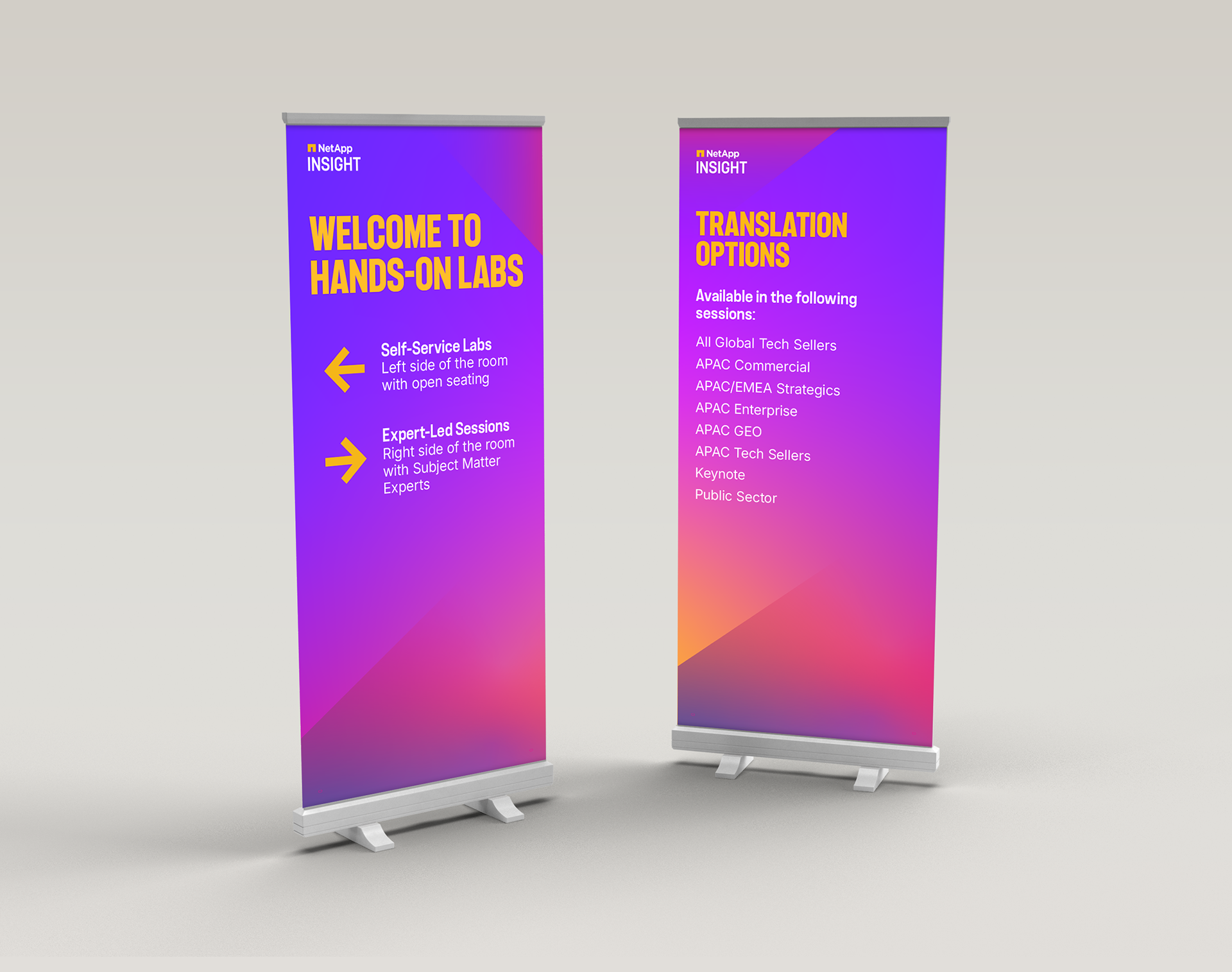 From concept through pre-production, I ensured every design adhered to NetApp’s brand vision and vendor specifications—delivering a cohesive, high-impact experience for thousands of attendees.