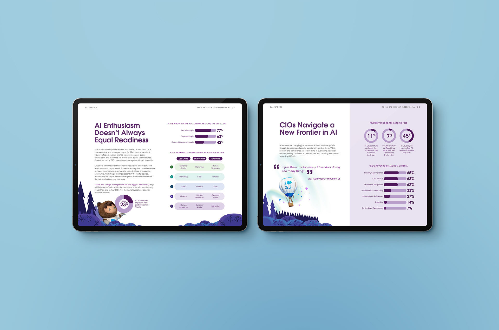 The CIO Dilemma Whitepaper was developed as a gated asset to present key research insights provided by the Campaigns and Communications team. My role was to transform raw data and statistics into a compelling, visually engaging multi-page PDF that would resonate with CIOs and IT decision-makers.